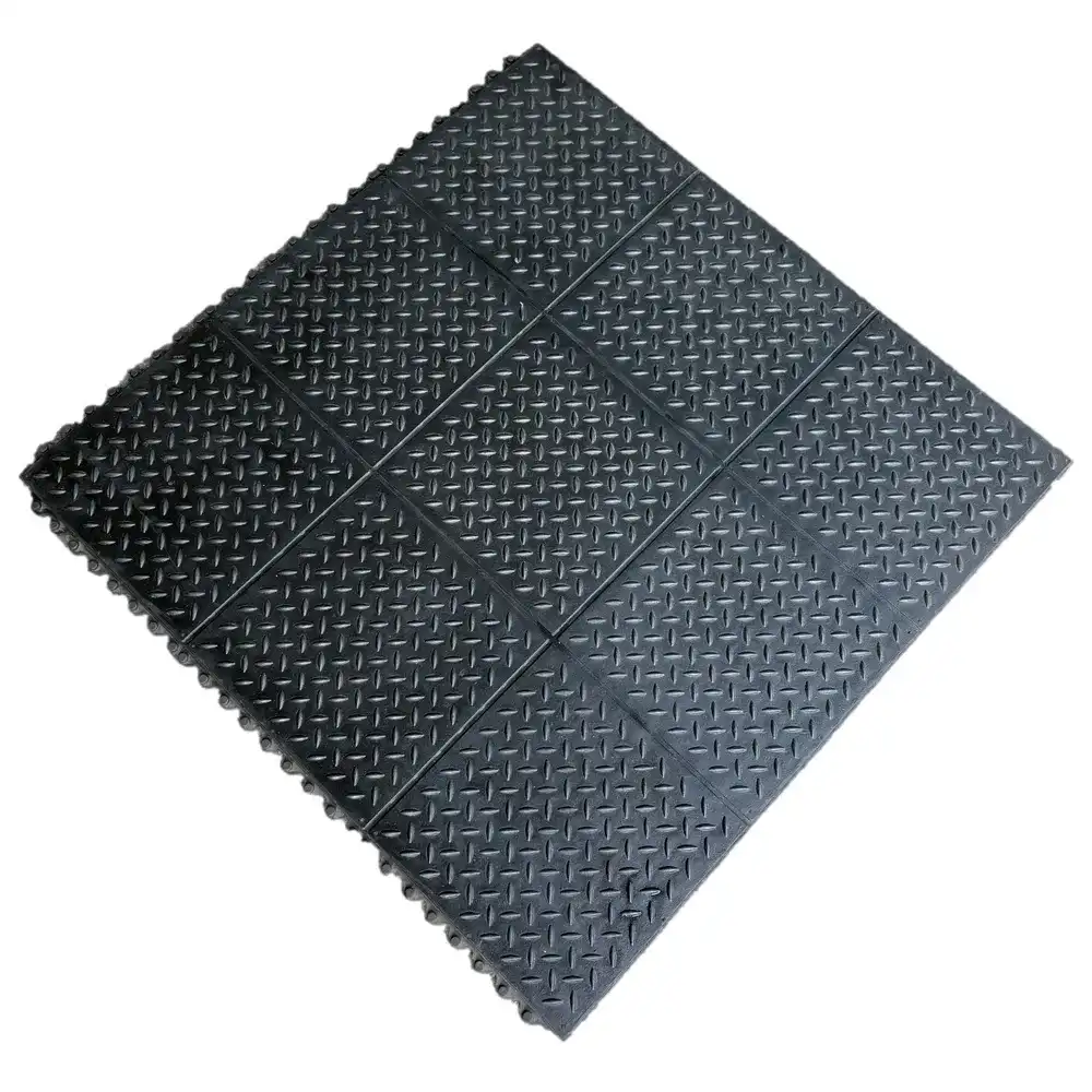 Interlocking Checker Plate Gym Mats offer durability, noise reduction, and floor protection. Non-slip, easy to install, and suitable for gyms, workshops, warehouses, and garages. Provides comfort and drainage.